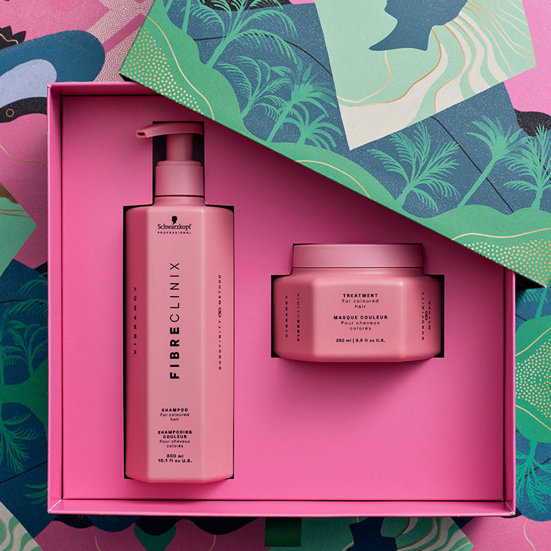 Celebrate colour this Christmas with the Schwarzkopf Professional Fibre Clinix Vibrancy Gift Set. Created for colour-treated hair, this duo helps to preserve colour intensity while leaving hair looking glossy and feeling silky smooth.
